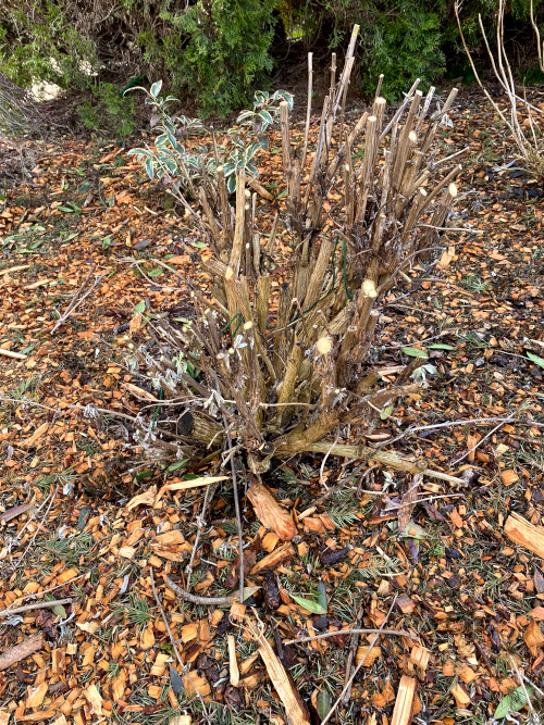 If you haven't moved a mature buddleia before, I have news for you - it isn't easy. The roots go very deep and it took me a while to get this out of the ground. First I pruned it all the way down, to about 2 feet tall.